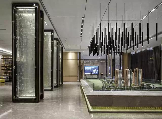 沙盤模型區(qū):充分利用建筑主體結(jié)構(gòu)的優(yōu)缺點,將空間中較為“礙事“的“結(jié)構(gòu)柱”與隔斷、吊頂?shù)冉Y(jié)合,形成一個又一個虛擬空間,使不同功能的空間既能彼此獨立,又能保持空間的大氣恢宏感。