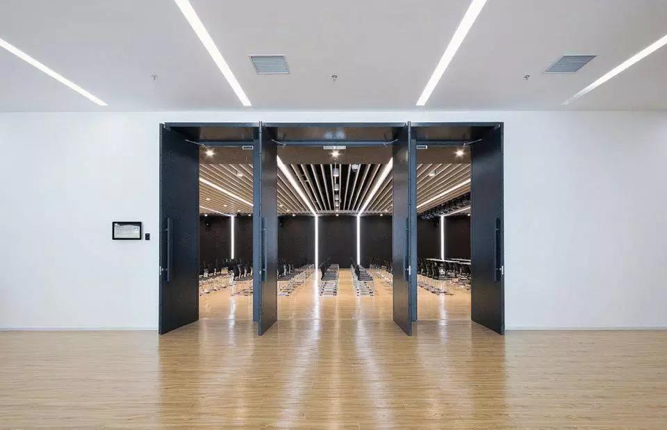 不同的空間內容對應不同的材質氛圍,從色彩到質感,再到意象化的裝飾,我們依據(jù)大堂、會議、休息室、中庭等不同空間尺度與空間內容營造新穎豐富、恰如其分的空間氛圍。溫暖的木色、混凝土板、白色大理石和白色乳膠漆為主要材料,其中報告廳大異其趣,優(yōu)雅高貴的深灰色布藝軟包與報告廳的相對集中和封閉性相得益彰。我們依托原有建筑空間序列,如大堂-電梯廳-等候區(qū)-多功能廳-VIP室-展廳,調整改變室內設計的溫度與濃度,為原本純功能理性化的空間組織蒙上一層魅力面紗,讓功能化的“經過”變?yōu)橐淮尾簧岬鸟v留與感受。