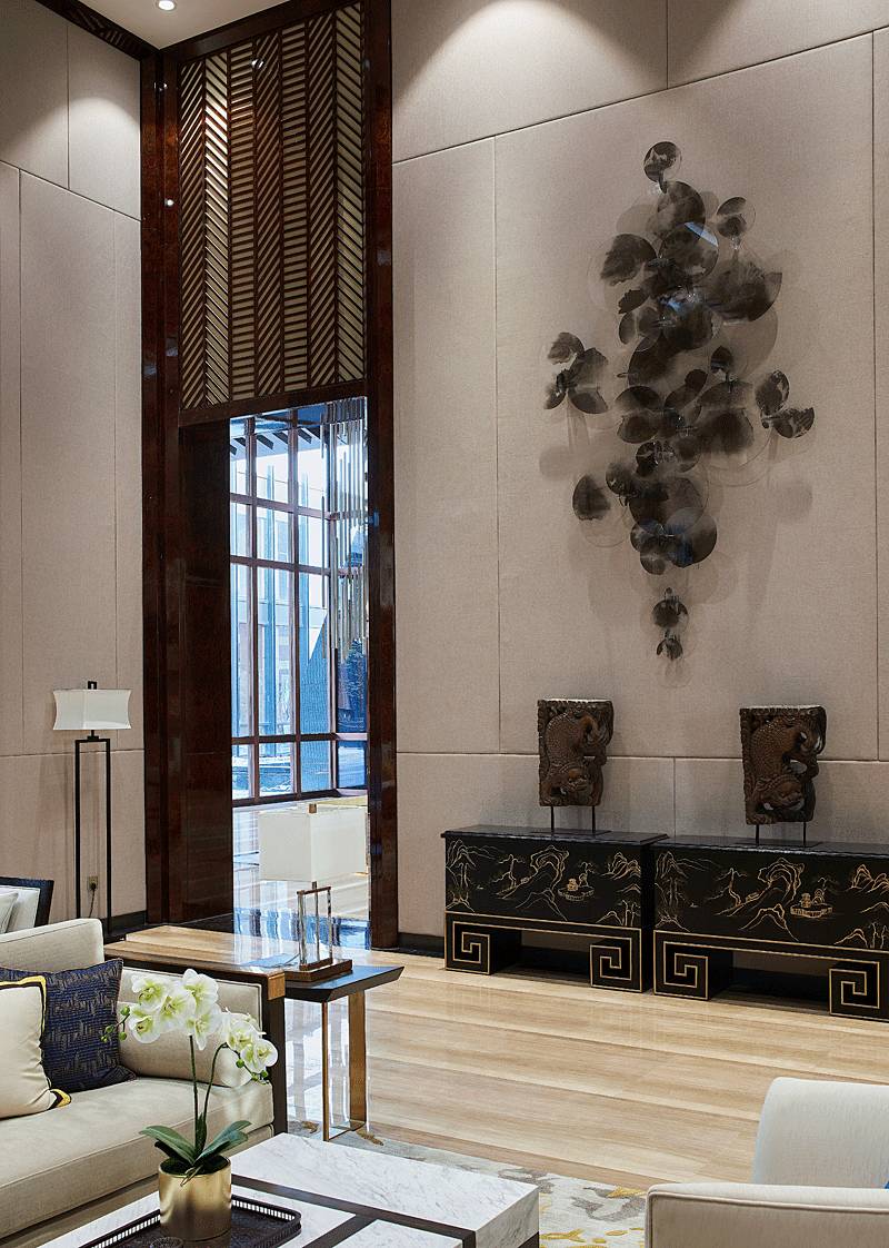 “湖光山色”項目位于西安歷史遺址觀光帶上,毗鄰鎬京遺址公園與斗門水庫,四周環(huán)境怡然靜雅,歷史文化氣息濃厚,近期其營銷中心已完工,軟裝設(shè)計交由深圳印象空間呈現(xiàn)。結(jié)合周圍環(huán)境及甲方需求,印象空間最終將西安古都情懷融于作品中,于細(xì)微之處傳遞意境之美。