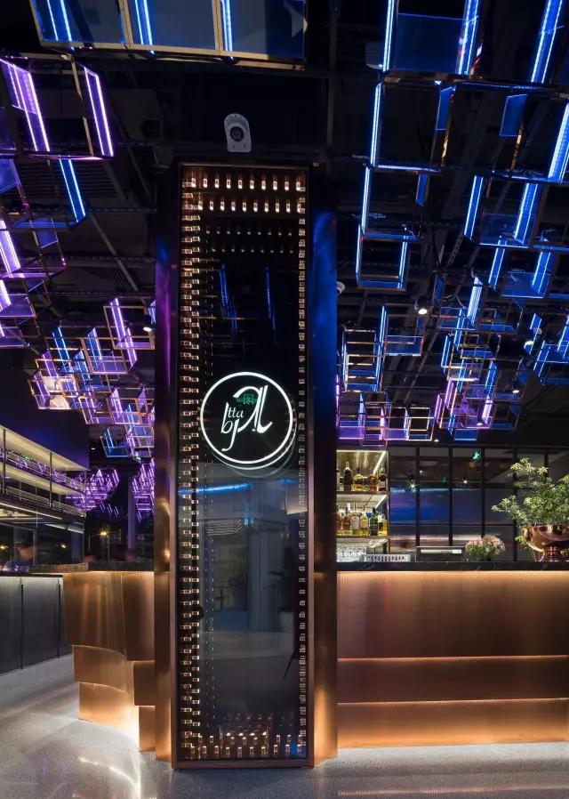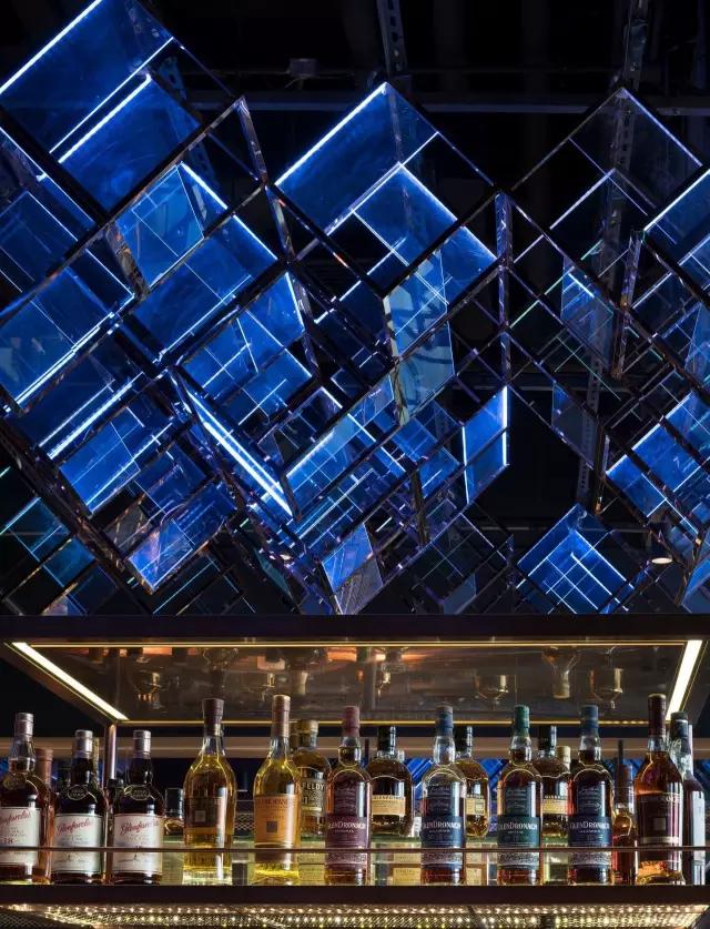 attabj意大利餐廳最美之處便是天頂上的藝術(shù)燈群,設(shè)計(jì)師通過抽象化、藝術(shù)化的手法,將這一感官體驗(yàn)濃縮為空間當(dāng)中的一組裝置,透明亞克力單元體如同酒杯內(nèi)的冰塊,而不斷變幻的LED燈光就像是色彩斑斕的酒體,兩者相互反應(yīng)形成夢幻迷離的光影效果。