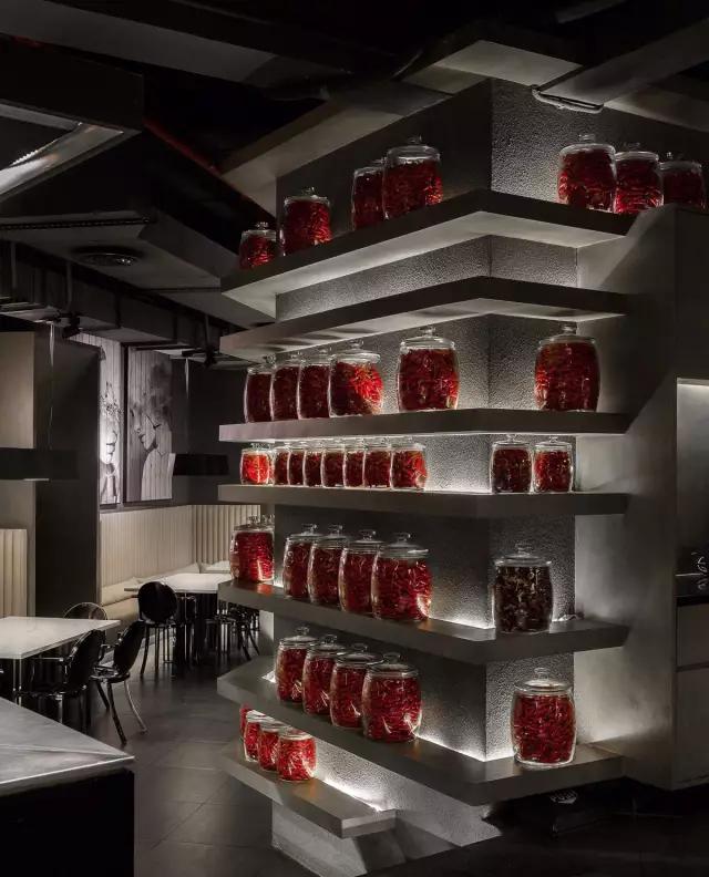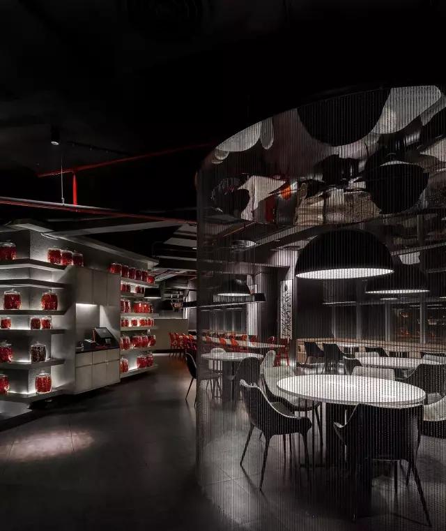 小辣椒湘菜餐廳空間,是以空間的多樣性為主軸。餐廳創(chuàng)始人提出以辣椒裝飾空間,設(shè)計(jì)師通過(guò)對(duì)“小辣椒”這個(gè)設(shè)計(jì)字符的不斷重復(fù),給空間增加藝術(shù)畫及創(chuàng)意燈飾,成為空間裝飾的細(xì)節(jié)。整個(gè)空間的體量不算特別大,但有下沉式空間設(shè)計(jì)。用于分割空間的雨滴式珠簾,似動(dòng)而靜的雨滴隔斷簾營(yíng)造親密又放松的用餐空間。