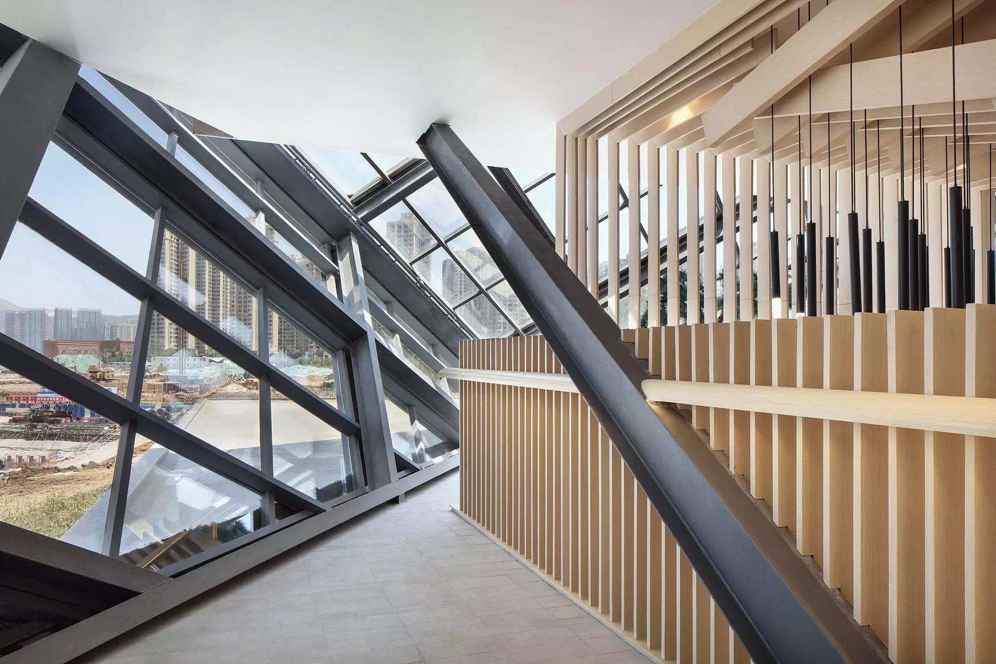 項(xiàng)目原屬昆明聯(lián)想科技城,后由融創(chuàng)地產(chǎn)接盤,他們希望將該建筑打造成為集辦公、商業(yè)、展示等多元化為一體的空間,并使其成為昆明新的城市地標(biāo)建筑。接手本案的主創(chuàng)設(shè)計(jì)師是默存設(shè)計(jì)的季青濤,作為具有建筑師背景的主創(chuàng)設(shè)計(jì)師,從建筑空間的思維從事空間設(shè)計(jì)便成為一種必然。在原有“盒子”空間的內(nèi)部,設(shè)計(jì)師以木結(jié)構(gòu)對(duì)空間進(jìn)行了重組和分割。