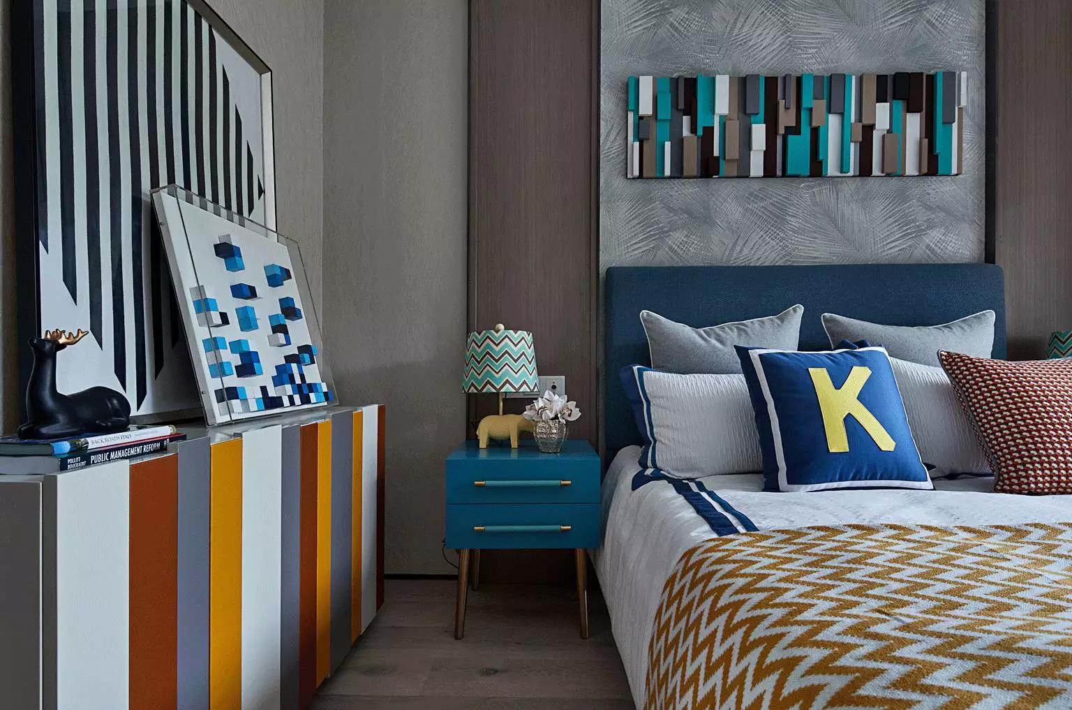 都市雅痞們的下一代,也必將是特立獨(dú)行,善于接受新事物的。所以在兒童房的設(shè)計(jì)中,加入了時下流行的樂高元素,不同色彩的積木條,不僅增添空間趣味性,也拉近了父母與孩子的距離。